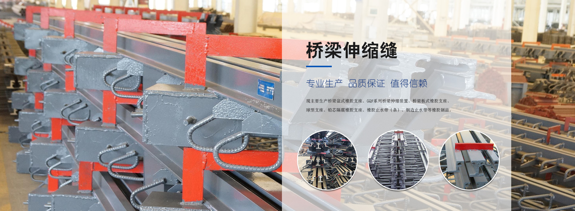 公司技術(shù)力量雄厚,擁有先進(jìn)的機(jī)械加工設(shè)備及橡膠生產(chǎn)和檢測(cè)設(shè)備?,F(xiàn)主要生產(chǎn)橋梁盆式橡膠支座、GQF系列橋梁伸縮裝置、橋梁板式橡膠支座、球型支座、鉛芯隔震橡膠支座、橡膠止水帶(條)、鋼邊止水帶等橡膠制品。